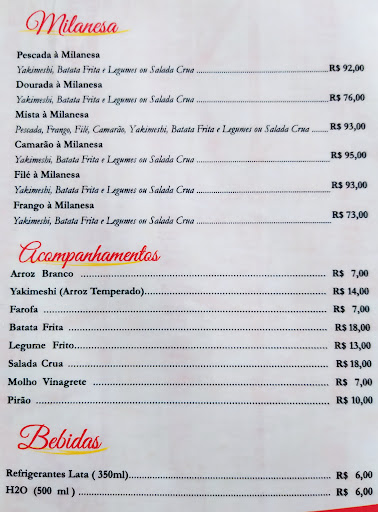 Read moreO peixe (dourada) tem sabor muito forte de tempero glutamato monossódico, longe do da culinária local; o yakimeshi parece que é de anteontem e os legumes são apenas repolho mal refogado na chapa com uns fiapos de cenoura ralada. Ainda acompanha uma batata frita que, pelo menos, estava aceitável. Apesar das porções serem bem servidas na quantidade, na qualidade deixa a desejar pelo preço cobrado. Não volto....