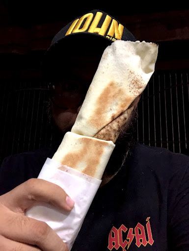 A Shawarma que é esse sanduichão da primeira foto, é ão mesmo. Mais de 30cm. Fechado na chapa ele fica tostadinho e crocante. Eu ia no de carne, mas como tinha uma opção Paraense eu fui nela. Shawarma de Camarão e Jambu, que o esfomeado aqui esqueceu de fotografar o recheio. Mas vinha bastante camarão mesmo pai. Tem de ir lá conferir essa mistura do Brasil com Egito.