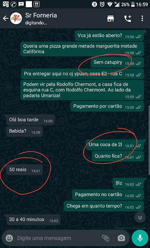 Read moreInfelizmente o atendimento a domicílio é péssimo, atendente sem nenhum requisito para atendimento ao público. Atendem com grosseria, ignorância, infelizmente pedi a atendente para me adicionar ao whatssap ela disse que não conseguiu, sem habilidade nenhuma para o atendimento ao público, o cartão de visita Sr. Gerente é o atendimento, o que não pode é os atendendentes não atenderem bem! DECEPCIONADA COM O ATENDIMENTO NAO RESPEITAM OS IDOSOS! E DEFICIENTES AUDITIVOS, DEFICiENTE DEVIDO 2 AVCs, 4 pontes de safena! ATENDIMENTO PESIMO, MAS RESSALTO QUE A PIZZA AS VEZES VEM TODA BRANCA QUEIMADA REFRIGERANTE FRIO, MAS A PIZZA QUANDO VEM LEGAL E GOSTOSA! MAS O ATENDIMENTO E MUITO IMPORTANTE TAMBEM E O QUE SUSTENTA A PIZZARIA E O CLIENTE PENSEM NISSO! VOCES PRECISAM CONTRATAR PESSOAS QUE NAO SERJAM SURDAS...