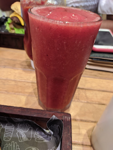 O suco era de abacaxi com hortelã e estava muito gostoso. Compreensível que se trabalhe com polpas. A minha percepção é de que é uma boa polpa. A proporção de abacaxi e hortelã, ao meu paladar, estava perfeita. Sentia os dois ingredientes perfeitamente.