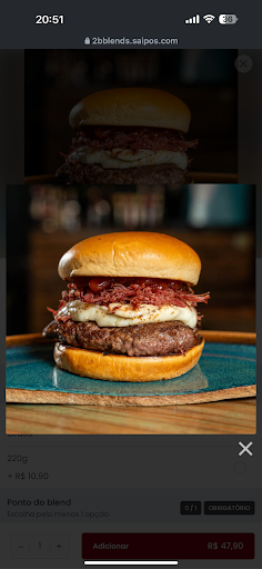 Fui hoje a noite com minha esposa comer um hambúrguer. Temos já experiência em ir a hamburguerias e definitivamente a 2B Blends foi uma PÉSSIMA EXPERIÊNCIA. Primeiro vamos lá: Pedimos 2 hamburguer, um da casa 2B Blends e um Smash, no Smash pedi acréscimo de bacon e mais uma carne smash, pedimos 1 Guaraná 2l e uma porção de batata pequena. Qual a lógica em todo lugar que você vai? A bebida chegar antes enquanto se espera a comida ou junto do alimento que primeiro vier a mesa, ou seja a porção de batatas. A porção chegou e nada de refrigerante, comemos a porção toda e nada de refrigerante, os hambúrgueres vieram e nada de refrigerante. Até aí ok, quando vieram os hambúrgueres, minha esposa perguntou pelo refrigerante e ela disse que ia trazer, meu Smash veio sem o Bacon e evidentemente sem a 3 carne, chamei a moça (que já tínhamos dado duas mordidas em cada hambúrguer e nada de refrigerante) até porque no meio do caminho quando foi buscar o refrigerante, chegou em uma mesa alguns conhecidos ela comecou a bater papo e se esqueceu mais uma vez do refrigerante, falamos da ausência de bacon e carne, ela ofereceu até trazer o bacon a parte, ia comer ele puro, só pode. Mas eu só disse que não precisava, que era só tirar da comanda, e sobre a carne, sem nem olhar pro meu hambúrguer disse que a carne estava lá, e o melhor: disse que ia trazer o refrigerante, que até o atual momento não tinha chegado... Quando cheguei ao caixa para pagar informei da ausência da carne, e aí a bonita apareceu dizendo que a carne estava lá, ver a carne não sei como ela viu, pq nem um simples refrigerante ela lembrou em tempo hábil de trazer, mas mesmo assim decidi nao criar caso, so pagar, vir embora e nunca mais voltar. Ah e mais, presenciamos uma outra mesa ao nosso lado receber o hambúrguer com o queijo errado, cheddar ao invés de prato. E um outro casal bem perto comer toda sua batata seca que só, pois o refrigerante deles também só chegou quando a batata já sido havia ingerida. O problema não é pagar pela carne ausente, o problema não é esperar eternamente pelo refrigerante, o problema maior é quando o prestador não reconhece o erro na prestação de serviço. A comida em si não há reclamações, pelo menos do que veio né!? Porém uma hamburgueria que é artesanal o que se preza é uma comida e um atendimento com excelência. Chance de retorno? 0. Chance de indicar para amigos? 0. Chance de sempre falar do péssimo atendimento quando me pedirem...