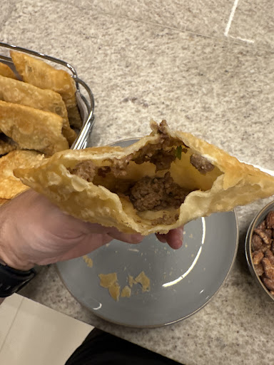 Nada daquele recheio de carne suculento e com cebolinha. Tava seco e sem cebolinha. Nada do queijo farto. Só tinha queijo "falto", mesmo. Nada daquela massa firme. Estava totalmente quebradiça e enxarcada, como os pastéis "baratos" de BH.