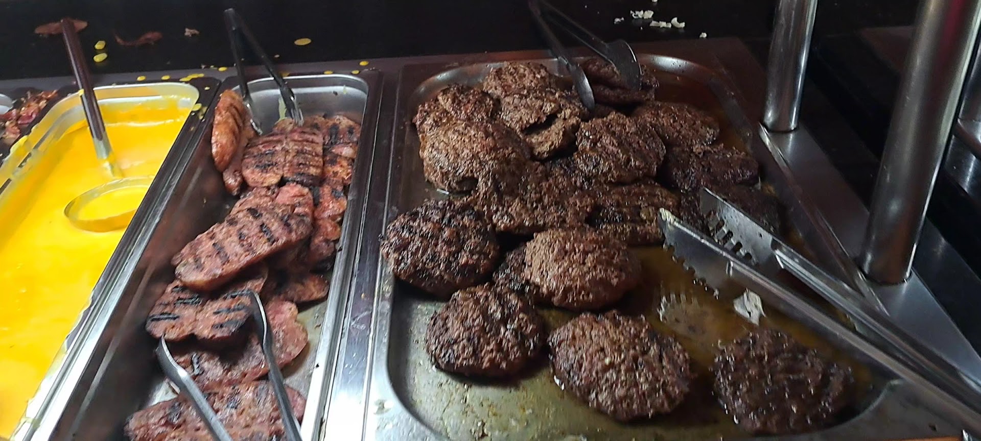 Ao pagar seu 'ticket-to-ride' a um caixa oculto em denso nevoeiro de fritura de hambúrguer, logo nas catracas vc terá visão ampla privilegiada da luta estilo livre no buffet de pizzas e sobremesas localizado ao fundo do estabelecimento.
