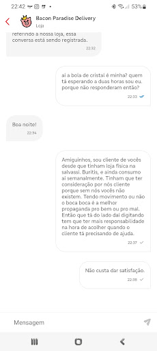 Read moreGerente BÁRBARA me aplicou um golpe pelo ifood. Motoqueiro chegou aqui em casa com a comida, CONFIRMEI A ENTREGA, e a gerente mandou ele voltar com o pedido para a loja, se não ia cobrar dele o valor da comida. Além de destratar o motoboy gratuitamente, desperdiçou comida e tentou roubar o meu dinheiro, uma vez que já havia confirmado o recebimento na plataforma. Um show de incompetência, grosseria e falta de educação. Baixíssimo o nível da gerente, empregar pessoas assim pega muito mal para a franquia. Essa prática de ameaçar cobrar do motoboy o valor da comida (que nesse caso ela inventou, nem tinha qualquer motivo para isso) é ILEGAL e ABUSIVA, e pode ser denunciada junto à justiça...