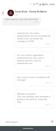 Read moreVendedora muito educada má tinha uma moça estava no caixa perguntei se tinha wi-fi para eu fazer o pagamento ela nem se querr olhou na minha cara e falou a internet e corporativa !😅 Agora não sei se porque estava com uniforme da empresa que eu trabalho !... e olha que só no só no Instagram eu tenho mais de 15 mil seguidores deu até vontade de colocar isso no meu Instagram mas não vou colocar que a cacau show não tem culpa só fiquei triste com o atendimento !saí de lá sem comprar o meu chocolate do dia dos...