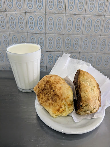 Estivemos duas vezes no Café Nice e comemos pães de queijo e doce de ameixa com café.