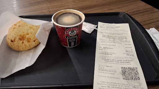 The service is very poor. I stood at the cashier for 30 seconds until thedistracted attendant noticed me. Asked for a coffee and a pao de queijo. Very expensive. As Inwas waiting for the items, she served a coffee and turned her back on me and did not gave me the pao de queijo until she looked back and asked: "anything else"? You can guess the rest...disappointed! BTW, it was empty as you can see...