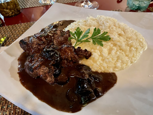 PRÓS: pedi um risoto com filé ao molho de jabuticaba. O filé veio no ponto que pedi. O molho estava gostoso. O ponto do arroz estava correto. garçons extremamente atenciosos; a entrada de polenta com ragu de linguiça estava divino. Acho que foi o ponto forte da noite; ambiente agradável pratos bem servidos