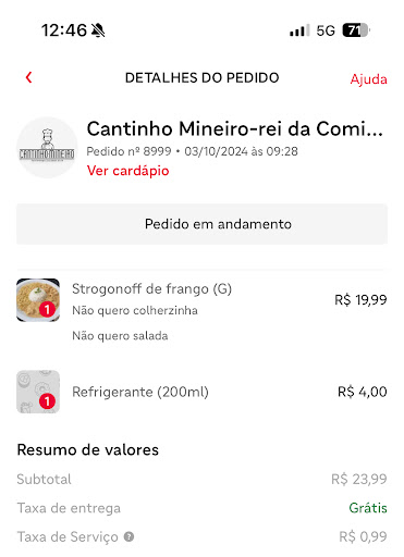 Read moreNão entregam o pedido! No ifood tem opções melhores e que entregam o que vc pede. Ontem fiz um pedido que não chegou no prazo, abri uma solicitação e não recebi resposta, liguei pra entender o que aconteceu e o restaurante disse que eu tinha cancelado o pedido (mesmo eu não tendo cancelado nada). Solicitei novamente a entrega do meu pedido que a funcionária disse que chegaria em 15 minutos (além do prazo que já tinha esgotado de aproximadamente 1h)... Esperei por mais 1h e o pedido não chegou, por fim eu saí pra almoçar em outro lugar. Se eu estivesse contando o tempo de espera, estaria esperando por 24h sem notícias do meu pedido. Restaurante péssimo e com histórico de não entregar os pedidos. Enfim, quem quiser arriscar pode...
