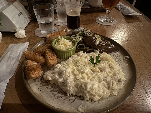 Read moreDesrecomendo! Lugar super desconfortável. Sem contar as cadeiras super desconfortáveis, a música estava tão alta mas tão alta, que não consegui conversar com as pessoas. Fui despedir de uma amiga que estava indo embora e não dava pra conversar, de tão alta a música. A música estava tão alta, que quando voltou do intervalo eu não aguentei e tive que ir embora. Fui pedir pro encarregado retirar o couvert, e nem ele mesmo conseguia me ouvir direito. Mesmo assim me obrigou a pagar os R$ 13,00 (caro e ruim). Ele vai vir aqui falar que está escrito numa placa na porta e no cardápio, mas aqui nos reviews tá cheio de gente reclamando da mesma coisa, que só percebeu o couvert obrigatório na hora de pagar. Ou seja, definitivamente poderia estar mais claro. Eu pago com prazer quando me agrada, mas a experiência lá foi absolutamente horrível, por isso não queria pagar. Fora isso, a comida não tem nada de mais, e a bebida nem estava muito gelada. Vá para outro lugar que você vai ser mais feliz.