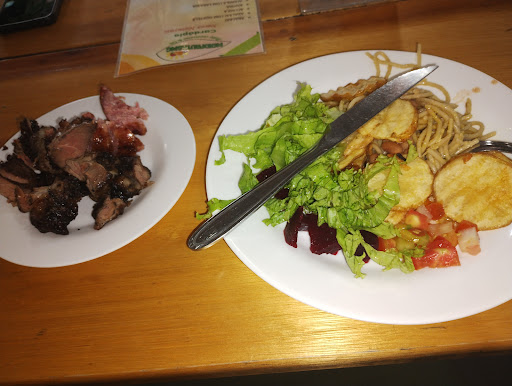 Read moreO tempero é bom, o churrasco não possui muita variedade mas é bem temperado, o ambiente é tranquilo e o serviço que, às vezes, deixa a desejar. Todos os atendentes são até atenciosos mas falta mais atenção na percepção das mesas que estão sem pedidos ou no acompanhamento dos pedidos. Já fiz pedido de suco que não chegou, nem.mesmo depois de terminar meu almoço. Para estacionar o carro que é mais complicado, principalmente nos dias de chuva, pois as vagas na rua ficam distantes da entrada do restaurante.No...