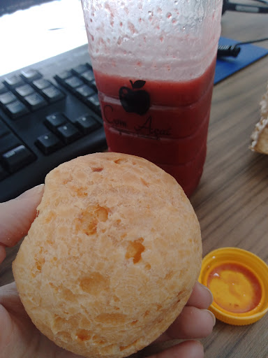 Read moreA comida é sensacional, tem opções vegetarianas de empadas e folhados, além dos pães de queijo e bolos. Os sucos de frutas vermelhas e morango com maracujá são divinos, coloque suco de laranja e é perfeito. As vezes o local está com muitas entregas e demora um pouco, ou muito barulho e fica difícil entender as coisas que são perguntadas, só tem duas mesas pra sentar, então não é recomendado ir...