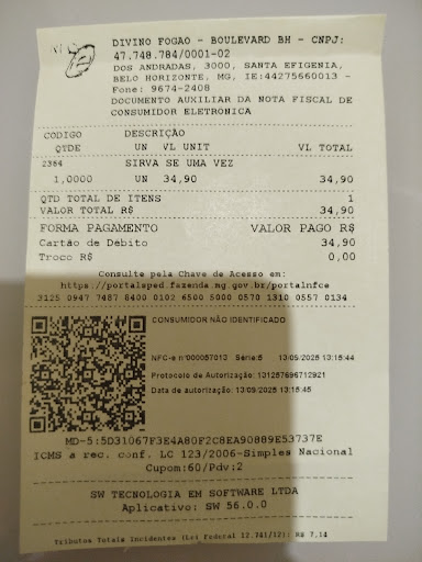 Read morePéssima experiência neste restauranteno shopping Boulevard. Não recomendo!!! Existem as opções de servir um prato a vontade por R$34,90 ou por peso. Os funcionários não informam que a opção está no tipo de prato, agem de má fé no momento do pagamento ao se omitirem quanto ao funcionamento dos serviços e valores. E mesmo dialogando a respeito dessa deficiência e solicitando a correção do valor do almoço por não ter recebido informações suficientes, o restaurante nega correção demonstrando nítida falta de boa fé!!!! A comida não tem um diferencial, a carne não tem sabor, pois parece ser feita sem amor e totalmente motivada pelo cego anseio do lucro em prejuízo da cultura de boa culinária e bom atendimento. Ressalto : de "divino" este restaurante...