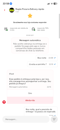 Read morePela segunda vez fiz o pedido de uma pizza pedido saiu pra rota e ficou mais de uma hora em rota de entrega até não chegou e a atendente Milena simplesmente disse que havia acontecido algo com o motoqueiro como sempre esperei esperei e nada lá se foram 1:30 de espera até eu ligar novamente. A motogirls simplesmente me informou que eles tinham perdido meu pedido descaso total com clientes adoro a comida mais o serviço sempre zero e sem contar que ainda chegou sem o refrigerante só recebi o pedido pois tinha uma criança em espera .Mais a partir de agora não peço mais e fiz várias avaliações sobre isso indignada pela...