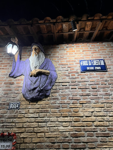 Read moreAmbiente muito aconchegante, diferente de tudo que vc já viu. Uma mistura de magia, fantasia e conto de fadas. O Fundos da Floresta bar tem o objetivo de te tirar da vida rotineira da grande cidade de Belo Horizonte e te inserir num ambiente de fantasia onde a magica acontece no meio da floresta encantada. Aqui fadas, duendes, bruxas e outras criaturas mágicas habitam e encantam os visitantes da casa. Decoração temática e a roupa dos garçons fantasiados dão um toque pra lá de especial, sem falar nos drinks e pratos do cardápio que levam nomes como: Néctar das fadas, Feitiço da Lua, Cogumelo Azul, Pergaminho do Mago, entre outros. A trilha sonora também é algo peculiar, variando de rock nacional e internacional de todas as épocas à músicas que lembram são Tomé das Letras, música celta e irlandesa e outras canções que você não irá escutar em nenhum outro bar da região. A casa também realiza mensalmente o ritual de lua cheia, uma noite especial com a visita de uma bruxa que traz com ela na vassoura atrações pra lá de especiais. Vale a pena conferir! É aconselhável reservar sua mesa para não encontrar...
