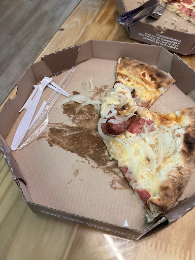 Utensils Provided: I received my pizza in a take-out box, accompanied by very flimsy knives and forks that broke easily while I attempted to eat. It was frustrating to deal with such poor-quality utensils, especially when I noticed that real silverware was available but was denied to me upon request.
