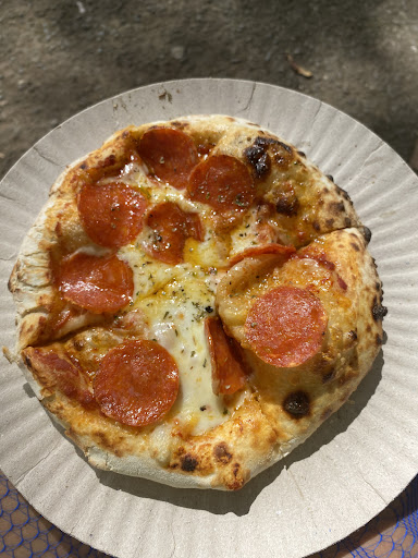 Estou apaixonada pelo lugar, quem tem uma praça como extensão do ambiente, tem tudo hahaha. Vamos começar pela vista, que é linda, o espaço na praça com mesas, mas também com pessoas sentadas nos bancos, grama e chão, que dá um ar muito gostoso de descontração. O sistema é de pagar a ficha e retirar os pedidos, dessa forma não há comanda nem taxa de serviços. A cervejaria é a Viela, mesma do Mercado novo e Juramento, ou seja, cerveja boa por um preço justo. Se você tiver o Growler deles é bom levar, caso não tenha será cobrado um valor de 6$ a mais no litro de cerveja, comprou uma vez é só levar das próximas e pagar somente a cerveja. Vende tbm o copo pequeno e grande de chopp, além de Xeque Mate, Gingibre, Rubra, refrigerante artesanal e outras bebidas. A cereja do bolo pra mim foi a Pizza. Melhor marguerita que já comi, massa de fermentação natural, queijo bom, ingredientes fresquinhos, vale muito! Experimentei tbm os talhos de cebola caramelizada e caponata, deliciosos. Meus amigos comeram a pizza de linguiça artesanal e talho de mortadela e limão, disseram que eram perfeitas tbm. Enfim, já estou me programando de voltar porque a experiência foi fenomenal, lugar do jeitinho que eu gosto.