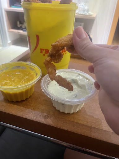 Sempre comemos o “Parmelé” e o “Frangoritos”. O primeiro dizem que é empanado com parmesão, particularmente não senti o sabor de parmesão, então é como se não tivesse. O segundo é empanado com doritos, também não senti um sabor diferente, nesse vem até uns doritos dentro do balde, mas por virem murchos acabam não sendo apreciados ou até comidos.