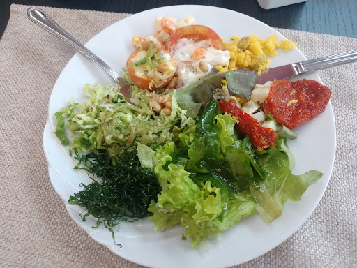 Hamburguers especiais, saladas, e claro pratos a la carte como massas, carnes, Risotto, Aves, e peixe.