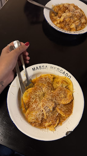Read moreEstava no mercado a procura de um lugar para comer com minha esposa e meus dois filhos (crianças). A única opção que achei foi o Massa. Sentamos normalmente e pedimos 3 pratos para nós quatro e até então tudo estava tranquilo. Ao chegar a comida pedi 4 pratos limpos pois todos iriamos provar um pouco de cada. Foi aí que começou nossa pior refeição da viagem. A atendente se fez de desentendida e perguntou: "não entendi?" eu falei novamente que queria 4 pratos limpos e ela trouxe e literalmente jogou na mesa. Nunca vi um atendimento desses. Depois ela passava e nem olhava para nossa mesa mesmo nós sendo os únicos clientes do restaurante. Ao pedir a conta a outra pessoa veio a má educada (que com certeza não é mineira pois todos os mineiros que conheci na viagem eram extremamente simpáticos e educados) com cara feia e a conta. A comida tinha um bom sabor mas o ponto da massa estava mais para um macarrão de...