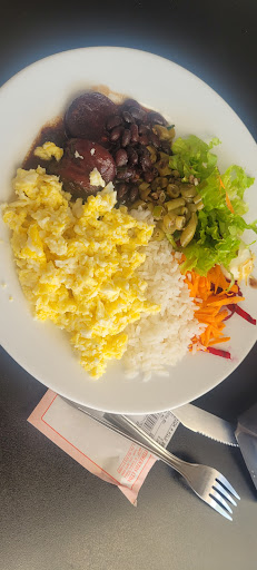 Read moreJá tive diversas experiências no local. A maioria ruim. A última (que venho registrar foi tenebrosa). A atendente foi fazer um omelete - a meu pedido- uma outra foi ajudar e piorou as coisas... meteu a mão no ovo. Eu fiquei abismada com a cena e cheguei a perguntar se a mão da moça estava limpa. Ela ainda ficou com raiva. Após o ocorrido, a atendente fez um ovo mexido e me entregou junto ao prato Eu só aceitei porque estava com pressa e precisava comer algo (e detalhe, não tinha carne no almoço- era 13:20). Ao terminar de comer, a atendente gritou ainda um "De nada", e eu fingi nem ouvir porque eu nao estava afim de brigar... Eu reclamei com a moça do caixa mas nada adiantou também.