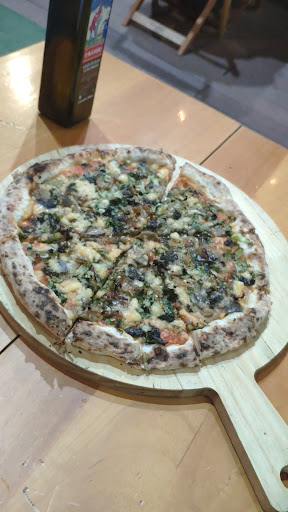 Read moreFui comemorar meu aniversário lá e gostei bastante, a única coisa que sugiro que foi chato, é se puderem colocaram um vidro ou alguma coisa na área de fora para evitar que pessoas que ficam pedindo dinheiro ou até mesmo pizza os clientes. Talvez um vidro temperado ou alguma coisa ajude. Mas o atendimento é muito bom, uma moça e um rapaz que faz a pizza super gente boa, atenderam super bem. O banheiro é limpo e exclusivo para os clientes. Sentir falta de sucos naturais, pela pizzaria ofertar pizza MUITO gostosas Veganas, esperava sucos também no mesmo patamar, ter suco industrializado para mim foi horrível, até porque pessoas saudáveis e Veganas, evitam também sucos industrializados ( foi este o motivo de não dar 5 estrelas) A massa da pizza é fina, a borda um pouco mais grossa, no final tem um formulário se quiser responde os clientes. Estava vazia a pizzaria, então foi super tranquilo e rápido, pizza quentinha...