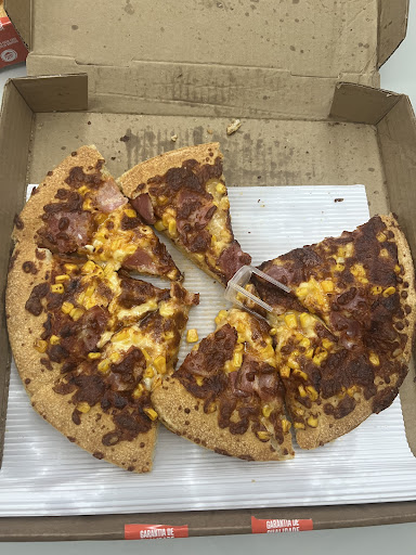 Read moreDifícil eu colocar uma estrela. Hoje, mereceram. Ao chegar na loja, a caixa não estava na área de atendimento ao cliente. Um funcionário, no horário de descanso, foi chama-la na cozinha. Não me cumprimentou. Pedi uma pizza média de bacon com milho e fui no supermercado ao lado até a pizza ficar pronta. Ao retornar, novamente a caixa não estava na área de atendimento. Um funcionário me viu e me entregou o pedido, que não era a função dele. Ao abrir a pizza, grata surpresa: pizza de milho, com pequenas fatias quadradas, mais necessariamente 8 no total, por estar sempre sobrepostas visualmente estavam 6. Bacon de baixa qualidade. Pizza bacon com milho considerada top, deixou a desejar. Atendimento desse, que a caixa, que recebe o cliente, fica batendo papo na cozinha e não importa estar onde o cliente chega (as risadas escutei na chegada e na saída do estabelecimento). Vergonhoso e lamentável. Não vou adicionar fotos por tamanha vergonha e constrangimento estou sentindo deste atendimento e...