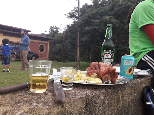 Show de lugar! Restaurante rústico encravado na base de um vale no Morro Vermelho, limite urbano da cidade de Caeté, numa estrada de terra de medio/fácil acesso, (da pra ir com carros de passeio baixos) fomos de bike! Tem dois poços que parece ser criação de peixes no fundo do restaurante que tem um grande estacionamento e grande gramado que poderia ser usado como área de mesas com guarda Sol! (Onde ficamos). Chegamos lá tarde, por volta das 14hrs estava lotado, muito cheio mesmo, não tinha mesas disponíveis, mesmo assim fomos muito bem recebidos pelos atendentes. Como estava cheio optamos por ficar do lado de fora onde tem umas bases de concreto que fizemos de mesa e cadeiras (mais tarde, ainda com o restaurante cheio surgiu mesas vazias dentro e nos chamaram, mas optamos por continuar onde ficamos). Na confiança nos deram comanda e levaram nossos pedidos lá fora onde estávamos! Achei muito bacana isso. O especial da casa é o joelho de porco, que estava com ótimo tempero e muito crocante! Super...