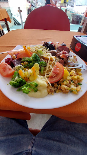 Sabor delicioso, variedade espetacular para diversos gostos, churrasco, self service, peso no quilo, tudo.