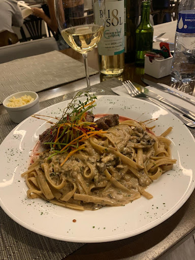 Os pratos têm uma boa apresentação, meu marido pediu um risoto estava bem fresquinho, quente, preparado na hora. O meu prato foi um filé mignon com farofa do chef e purê de baroa. A farofa estava guardada na geladeira porque estava gelada e o purê de baroa a textura e sabor estavam ótimos mas estava frio. O pior que achei foi o atendimento, dois garçons pra um salão daquele tamanho. A bebida demorou pra fechar a conta, depois de pedir duas vezes e aguardar 30 minutos, levantei e fui atrás do garçom. Precisa melhorar muito o...