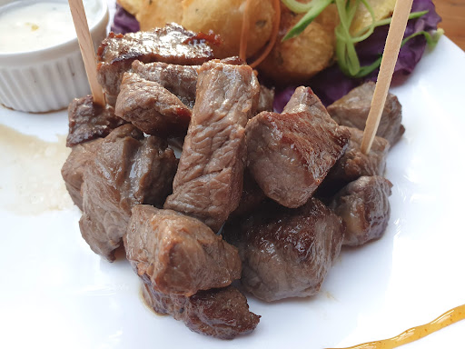 O prato do Comida de Buteco 2021 foi "Combinado da Lucinha e Cidinha". A carne de sol não era exatamente carne de sol, mas uma carne pouco salgada (sem exagero) que lembra uma carne de sol. Pareceu ser uma carne comum, como um contra filé, alcatra ou chã de dentro. Estava em média um pouco dura, misturado com alguns pedaços mais macios. O molho de queijo gorgonzola, só lembra o gorgonzola bem de longe, experimentado sozinho. O Chips de batata baroa é uma delícia e o bolinho especial da casa chamou mais a atenção do que a carne de sol. O prato é bem apresentado com fio de molho doce.