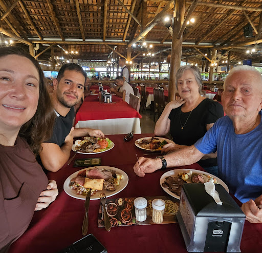 Como pontos POSITIVOS destaco: Excelente local para almoçar com a família. Comemorar aniversário, noivado, almoço de batizado ou simplesmente variar a rotina de sempre almoça em casa. Bastante variedade de alimentos. Todos quentes ou frios aqueles que assim devem ser. No domingo, que é geralmente quando frequento, não tem cover artístico, o que particularmente acho excelente. E nos dias que tem, o valor não é cobrado dos clientes de forma sumária como em muitos estabelecimentos. A comanda é de cartão magnético igual aos da rede Graal, o que é muito prático. O ambiente é rústico, lembra muito restaurantes de beiras de estradas de interiores. No bom sentido é claro. Como o local é todo aberto, evidentemente não tem ar condicionado, mas tem ventiladores e exaustores para todo os lados o que torna o local extremamente arejado mesmo em dias mais quente e bastante movimentados. Tem espaço kids bem amplo. O estacionamento é gratuito. Como pontos NEGATIVOS destaco: Por ser um local muito bom e agradável. Em qualquer horário do domingo, faz parecer que só existe esse restaurante em toda BH e região. O local fica entupido de gente. Chegando a fazer filas ENORMES para entrar no restaurante e filas aínda maiores para estacionar o carro. Por consequência, o ruído interno do restaurante é muito alto mesmo sendo um local aberto. Chegando a gerar desconforto e fadiga. Para conversar com a pessoa ao lado precisa falar alto, o que é desconfortável dependendo do que esteja conversando. Tem poucas opções de sobremesas. Os sucos naturais, não tem açúcar nenhum, tornando qualquer um amargo e por fim e não menos importante. O preço é salgado mas não fora da realidade dos demais restaurantes self-services da região. O preço em média da comanda para um casal comendo bem. Tomando cada um suco e uma mini sobremesa, gira em...