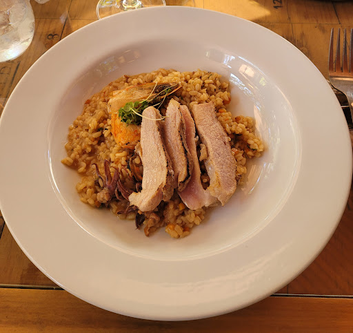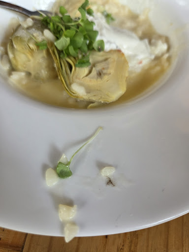 Já o risoto de alcachofra veio uma aranha de brinde. O risoto estava com um gosto e textura pouco satisfatórias e veio uma pétala da alcachofra, a parte dura, que não se come, muito desagradável.