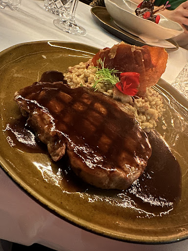 Tinha visto muitos reviews positivos sobre o restaurante e, por isso, decidi comemorar uma data especial lá. O restaurante é bem localizado e o atendimento inicialmente foi gentil. Fomos direto para os principais: pedimos um filé mignon ao vinho com risotto e um cacio pepe com fraldinha.