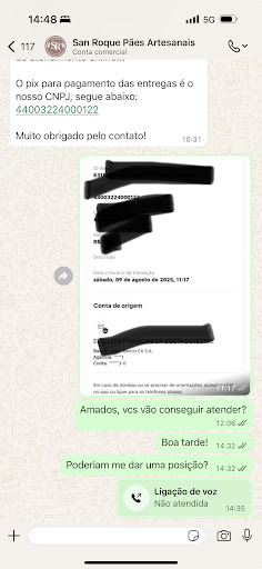 Read moreFiz pedido por whatsapp, para o Dia dos Namorados. Encomenda: 2 pain au chocolat, 2 Cinnamon Roll, 1 baguete de alho poró, 1 focaccia. O cinnamon e a focaccia estavam muito bonitos e extremamente saborosos; crocantes por fora e suculentos por dentro. Já a baguete estava um pouco murcha, mas o sabor é excelente. O pain au chocolat me deixou desapontada: sugiro que troquem a foto do menu, pois dá entender que trata-se do pain bicolor; a massa é bastante gostosa mas a quantidade de chocolate é muito pequena, mas ressalto que é um chocolate de qualidade. Mesmo com as ressalvas, pretendo voltar à loja para experimentar...