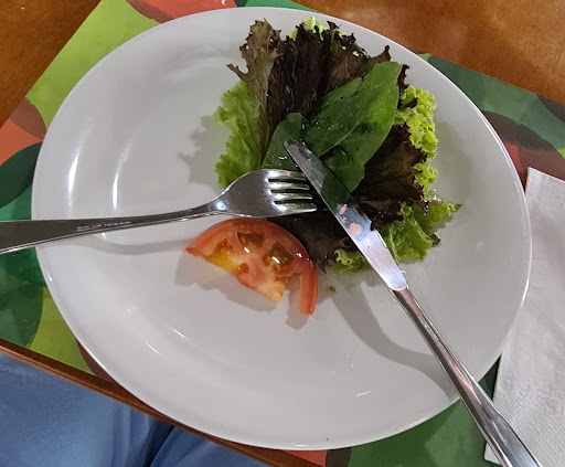 Pedimos um prato fora do menu fixo. Os legumes não tinham aparência de novos, e o peixe tb não estava com boa aparência. Pedi para trocar, o que fizeram prontamente. Então, preferi um omelete, p/ evitar novos problemas. Estava bom, com boa aparência, assim como a salada que o acompanhou.