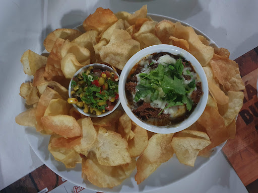 Comida de buteco 2021: "Cabrón da peste" Chili de maçã de peito e lingüiça aberta, cozido lentamente como um ragu, acompanhado de pico de galo (vinagrete) nordestino com feijão fradinho e nachos de batata doce.