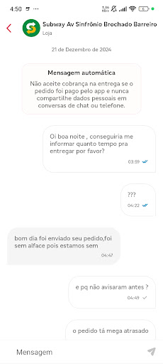 Read morePedi o combo sanduíche, bebida e cookie pelo ifood. Veio faltando a bebida. Entrei em contato com a loja e a gerente foi grosseira e falou simplesmente que enviou a bebida, como se eu estivesse mentindo. Mesmo que o entregador tenha pegado a bebida para ele (o que é possível), não se trata o cliente dessa forma, meio que mandando um “se vira aí”. Sinceramente, que despreparo. Eu nem estava pedindo para que enviassem outra. So reportando um problema. Perderam um cliente.
