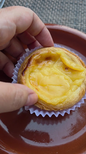 E para finalizar, o pastelzinho de Belém é uma pedida obrigatória, viu? É feito na casa mesmo. Vem queeentin, a massa crocante. A massa folhada é uma deliciaaa e o recheio com um creme suaveee! Incríveeeel!!