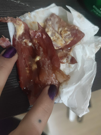 Pra completar o pior de tudo... Minha esposa pediu talheres e eu fui no balcão buscar. Fiquei observando o rapaz na cozinha pegar os talheres e vi que ele pegou talheres sujos e só deu rápida passada na água. Ele também desconfiou e ficou apreensivo porque reparou que eu vi. Chegando na mesa de volta a faca suja de gordura, molho e o garfo também. Obviamente minha esposa não olhou. Eu quis devolver e reclamar e voltei pro caixa. O rapaz me viu com o talher na mão e novamente apreensivo. Pra não gerar atrito preferi...