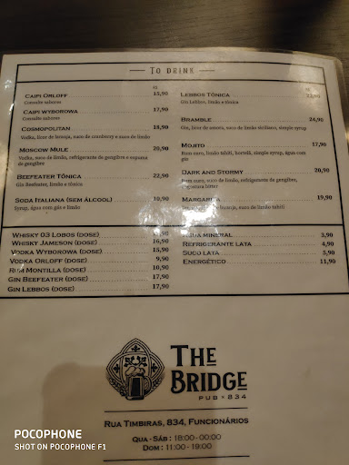 Read moreLes cuento un poco de mi aventura. Hoy es domingo y yo solo tengo dos semanas en Belo Horizonte, no sabia que los domingos no hay lugares abiertos para almorzar cerca de la zona de mi hotel y caminé a los lugares que conozco dónde creí podía conseguir comida y no encontré ninguno conocido abierto. Ahí comienza la aventura, entre a un lugar nuevo llamado The Bridge, es un lindo y acogedor pub inglés con una comida exquisita y una atención maravillosa dónde puedes reunirte a beber una buena cerveza Alë y comer mientras vez el partido de fútbol de tu equipo favorito o en su defecto escuchar buen rock. El plato que voy a publicar no está en el menú, lo prepararon porque yo estoy caminando y los lugares donde podía encontrar algo abierto quedan muy lejos. Es pollo cortado en tiras sazonado con ajo, gengibre pimienta negra y un poco de salsa de soya, un cremoso y esponjoso puré de batatas, tomates cherry salteados bastones de zanahoria salteados. Decir que el plato está exquisito es quedarse corto porque el chef del lugar (al que conocí para que pudiera ensamblar mi pedido) se esmeró para que quedara divino. Decirles que podría volver a comer acá es como un hecho ya que los domingos no hay restaurantes abiertos en la zona de Savassi o Funcionário en Belo Horizonte. Pienso que hasta el plato lo podrían agregar a su menú porque sería un HIT!! Yo recomiendo este lugar con los ojos cerrados porque tiene todo lo que una persona busca cuando quiere comer: buen ambiente, buena comida y buena...