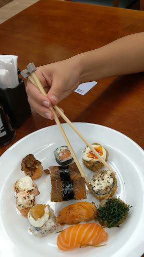 Normalmente reservo minhas aventuras gastronômicas com sushi para restaurantes de alto padrão. A única exceção à minha dedicação inabalável ao sushi tradicional japonês é a indulgência ocasional em sushi de fusão peruano de alta qualidade. Você vê, tenho expectativas extremamente elevadas quando se trata de sushi. Portanto, foi uma mudança significativa em relação à minha rotina habitual quando decidi sair da minha zona de conforto e experimentar este lugar. Ele havia recebido altas classificações e prometia uma fusão de sushi japonês e brasileiro, o que me intrigou. Para minha agradável surpresa, descobri que os sabores eram deliciosos e os preços eram surpreendentemente razoáveis. Agora, devo admitir que estou acostumado com sushi muito fresco, e embora este lugar talvez não tenha atingido esses padrões exigentes, ele mais do que compensa em termos de valor. A variedade de opções e a abordagem única de permitir que os clientes experimentem um pouco de tudo e paguem pelo peso são verdadeiramente louváveis. Sinceramente, acredito que o que eles alcançaram aqui é bastante criativo. Eles conseguiram fazer tudo ter um sabor delicioso e oferecer uma variedade notável. Este não é de forma alguma um restaurante fino, mas oferece um ótimo custo-benefício e apresenta uma abordagem divertida da fusão de sushi. Entendo que os puristas podem torcer o nariz diante da ideia de mexer na autenticidade do sushi e de seu peixe imaculado. No entanto, encontrei essa fusão de sabores como uma experiência divertida e intrigante. Não é algo que você encontraria no Japão ou no Havaí, mas para o Brasil e a América do Sul, posso ver que pode se tornar um destino popular para sushi. Para aqueles que se consideram verdadeiros conhecedores de sushi, sugiro vir aqui de mente aberta e simplesmente saborear a mistura de sabores. Pode não estar alinhado com as tradições mais rígidas do sushi, mas é indiscutivelmente uma experiência única e agradável. Eu recomendaria experimentar pelo...