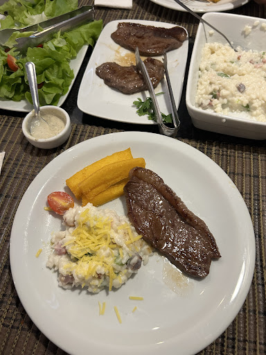 Estávamos a procura de almoço colonial ,nos caminhos de pedra, paramos para saber o valor do almoço , a sequência 98,00, optamos por ala carte Eles servem pratos para duas pessoas muito bem servidos (pelo valor de 98,00 para duas pessoas ) Tem opções de massas e risotos *tortei ao molho de tomates secos macarrão ao molho de carne de panela espaguete ao queijos *espaguetti ao molho pesto *espaguetti a carbonara *nhoque ao suco risoto caprese *risoto figo e Parma *risoto limão siciliano e alho poró Qualquer uma das opções de massas ou risotos vem acompanhado de um tipo de carne , entre eles (picanha,alcatra,frango a passarinho ou linguiça Toscana), polenta, salada verde e focaccia de entrada, e mais sobremesa no final sagu com creme ou pudim Realmente muito bem servido, acaba saindo 49,00 por pessoas , muito bom custo benefício , sem contar a cordialidade dos garçons , que estão toda hora na mesa perguntando como está , se oferecendo para esquentar a comida e ainda deram um pratinho de cortesia para minha filha de porções extra de massas e carne Seensacional sem explicação ,...