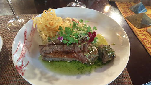 Entre muitas opções para meu penúltimo dia em Bento, escolhi este restaurante especificamente por ter como carro chefe o Wellington, prato que sempre quis experimentar. Pedimos o filé mal passado. Um tempo depois o garçom veio à mesa informar que o prato viria sem cogumelo. A duxelle é parte importante do prato, mas decidimos manter o pedido, pois ainda assim poderia ser bom. O que foi servido, porém, foi uma carne muito seca e sem sabor, totalmente passada do ponto. Foi estranho, pois no próprio cardápio consta que o prato só é servido ao ponto ou mal-passado. Desistimos de comer, consumimos apenas os acompanhamentos. O maître foi solícito em abater 50% do valor do prato, mas mesmo assim a sensação foi de ter saído no prejuízo, pois se soubesse que não daria pra comer o filé, jamais teria gasto o valor correspondente à metade do preço desse prato (ainda caro) só pra comer risoto com batata palha. Pelo destaque que o prato tem no cardápio e pelo valor cobrado esperávamos um filé suculento, no ponto correto, com duxelle e presunto parma conforme as receitas tradicionais, não saímos esperando comer uma carne seca, pálida e sem gosto enrolada diretamente na massa folhada. Pode ter sido azar, um deslize pontual na cozinha ou uma falha de comunicação, mas saímos desse local muito chateados pois com o tempo e dinheiro gastos podíamos ter escolhido outras opções. Dito isso, o local tem uma decoração muito interessante e a entrada estava...