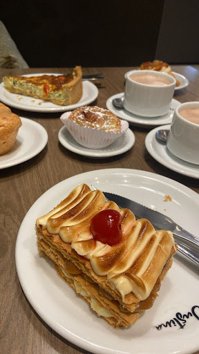 A padaria é maravilhosa. Na verdade, creio que é a melhor padaria que já fui, pelo menos aqui no Brasil, sendo que já fui em várias. Os alimentos para venda são todos feitos no dia, o que é impressionante. Eles tem uma ampla variedade de doces e salgados, sendo vários deles bem diferentes. Eles tem não só doces, mas massas caseiras (não peguei, mas dava para ver que a qualidade era boa, pois era bem amarela a massa), pães, salgados, doces com boa variedade (quindim, donuts, folhados de vários tipos, brigadeiro, etc), geleias e entre outros. O ambiente é pequeno, mas limpo e agradável, tendo uma boa decoração (simples, mas com qualidade). Cadeiras confortáveis e mesa boa. No local é possível comer e tem louças de boa qualidade. Banheiro bem cuidado. Quanto ao atendimento, foi muito bom, eles são bem claros na hora do pagamento e confirmam exatamente como foi o consumo (como advogado, sempre acho importante o estabelecimento ser bem claro e o pessoal está de parabéns). São pessoas atenciosas e muito educadas. Não perguntei, mas tive a impressão de se tratar de um negócio familiar, o que, para mim, é sempre um ponto positivo (por mais que grandes marcas sejam muito boas, acredito que o comércio familiar tem um atendimento especial ao consumidor). No tocante ao preço, quando fui, não tinha noção do valor e estava acostumado com os preços de Porto Alegre. Como estava de viagem, pensei em pegar tudo (visto que já havia economizado bastante). Peguei vários doces e pensei que iria gastar uns R$ 100,00 por conta da qualidade dos alimentos e quantidade que peguei (conforme a foto), mas não gastei metade disso, tornando o custo-benefício impressionantemente bom. Fui nessa padaria enquanto estava a caminho do Vale dos Vinhedos, vindo de Porto Alegre, no final de maio de 2024 e foi uma alegria conhecer. Não conhecia o local, mas foi uma parte muito boa da viagem. Sou de Porto Alegre e queria que tivesse uma perto da minha casa, pois as coisas que eles fazem e vendem são muito boas. Espero um dia voltar para reviver essa saudosa experiência.
