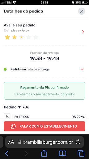 Acabei encontrando a Brambilla Burger. Achei bem classificado e então fiz o pedido para entrega no Hotel.