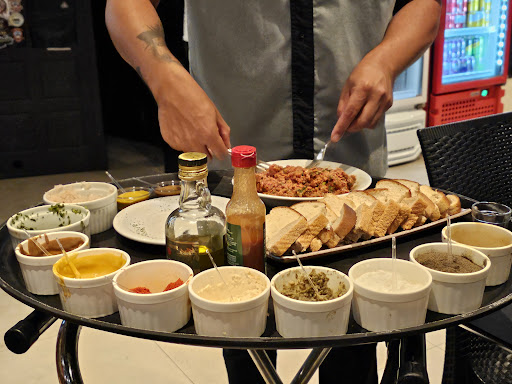 Busy place, which reflects during service. We ordered a very classic German dish, Hackepeter, which was ruined by mixing endless spices and condiments into freshly (over) minced meat and boring bread. Ultimately, the entire dish smelled and tasted like the low-quality pepper sauce they used. The Eisbein and sides were ok. Having to stand in line to pay your bill, I found a major inconvenience, especially for the...