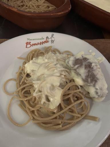 O nosso prato, apesar de bem servido, poderia ter vindo acompanhado de legumes, não se limitando somente ao molho de quatro queijos, carne e massa. Culinária italiana não se restringe a massas, afinal. Digo isto pois já estive em alguns restaurantes italianos fora do Brasil, em que os pratos servidos geralmente vinham com alguma porção de legumes, ou junto com o prato, ou numa porção separada. No mais, pelo valor que se paga pelo prato para duas pessoas, poderia estar incluída uma pequena entrada de torradas com manteiga e ervas, que possuo um custo operacional baixo para se produzir. Talvez a porção de molho poderia ser reduzida, e no lugar serem servidas torradas, bem como legumes serem adicionados ao prato.