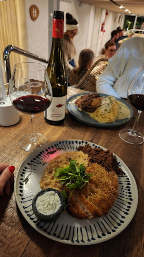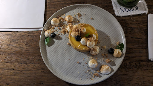 Read moreO restaurante Mailde é um local que vale a pena não só ir uma vez, mais várias. Fui jantar no local, em uma sexta-feira e não tinha feito reserva. Havia mesas reservadas e mesas para que aqueles como eu não se atentaram a isso. O local já começa na parte de fora, que possui umas mesinhas com meia luz, em uma clima bem aconchegante, quando você entra a decoração te leva para outro lugar, me lembrou muito a Grécia, o que reforça a gastronomia mediterrânea do local. Os vinhos são na sua maioria Europeus e a comida tem enfoque mediterrâneo. Você pode tomar café, almoçar, comer um brunch ou jantar, o cardápio conta com essas opções. Comemos um frango crocante ($$) que acompanhava risoto e um molho, e também um entrecot com massa com queijo pecorino ($$$), mas há várias opções com frutos do mar, inclusive paella. Muito muito bom! Os pratos são individuais e variam de $42 a $130 mais ou menos. Tem algumas opções veganas e vegetarianas, e tambem notei no cardápio que havia a possibilidade de pratos sem glúten se solicitados ao garçom. Há também vários drinks autorais e clássicos, super bem apresentados, como também uma boa carta de vinhos, em sua maioria europeus. O atendimento foi muito bom, a garçonete era bem prestativa e o tempo do prato não demorou, algo em torno de 20 min, mesmo com o restaurante cheio. Fiquei com vontade de voltar pela manhã e pra um almoço pra curtir o ambiente e experimentar os outros pratos. É uma experiência que vale a pena, tanto pelo local que ficou de ótimo bom gosto e que te transporta como pela boa...