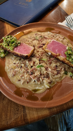 Una piacevolissima scoperta! Il ristorante offre un menu diversificato con piatti elaborati e saporiti. Su consiglio di amici, abbiamo cenato in questo ristorante proprio nell'unico giorno dell'anno in cui mi astengo dal consumo di carne... poco male! É stata un'ottima opportunità per apprezzare piatti veramente ben preparati e ben serviti, perché la verità è che anche l'occhio vuole la sua parte! La posizione del ristorante é ottima, a due passi dal Plaza dove eravamo ospitati quindi, per noi, facilmente raggiungibile a piedi. L'esterno non richiama particolarmente l'attenzione, ma all'interno è tutto molto curato e l'atmosfera che si crea ricorda quella di tanti piccoli ristoranti delle isole greche. Il menu è vario e accontenta tutti i tipi di palato, offrendo piatti a base di carne, pesce e vegetariani. Il servizio è stato puntuale, ma mi permetto di osservare che il cameriere può interagire e consigliare l'ospite con maggiore disponibilità. La cortesia non è mancata, ma si può migliorare da questo punto di vista, sono stato servito e consigliato meglio altrove durante il mio viaggio nello stato di Santa Caterina. Parlando dei piatti, faccio i miei complimenti alla cucina. Impeccabili: tonno freschissimo e saporito, gli gnocchi di mia moglie avrebbero fatto bella figura anche in un ristorante italiano, il dessert delicato e ben decorato, così come i cocktail. In sintesi, un'ottima scelta, un ristorante che merita la buona reputazione che ha. I prezzi sono nella media per il tipo di ambiente e di piatti, quindi assolutamente onesti. Quando avrò la possibilità tornerò...